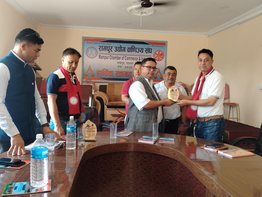 आज मिति २०८२ वैशाख महिनाको २८ गते मकवानपुर उद्योग वाणिज्य संघबाट अध्ययन अवलोकन भ्रमणको शिलशिलामा आउनुभएका संघका अध्यक्ष, केन्द्रीय सदस्य, जिल्ला समन्वय प्रमुख लगाएका आदरणीय व्यक्तित्व ज्युहरुलाई रामपुर उद्योग वाणिज्य संघमा स्वागत गरियो ।